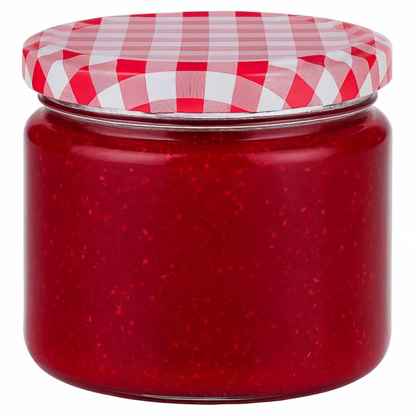 Informacje dot. produktu "330 ml okrągłe szkło z pokrywką BasicSeal czerwono-biała UN.."