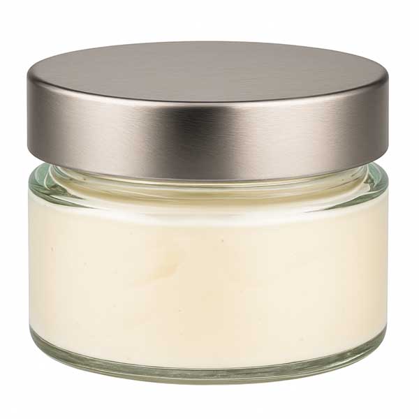 80 ml okrągły pojemnik szklany + pokrywka BasicSeal srebrna głęboka UN..