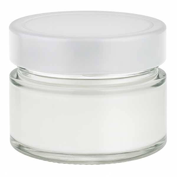 80 ml okrągły pojemnik szklany z pokrywką BasicSeal biała głęboka UN..