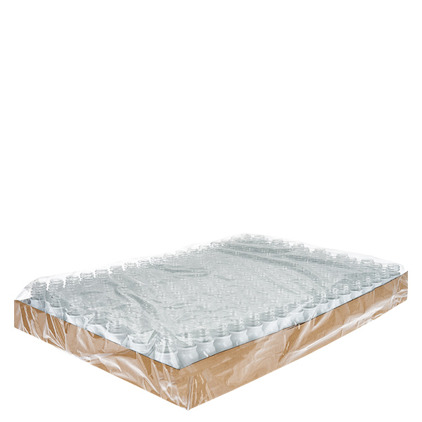Gwint jest dobrze wykonany i nie jest pokryty powłoką. Gwint 18 mm (UT18) umożliwia stosowanie odpowiednich korków.Słoik nie zawiera żadnych zmiękczaczy ani substancji szkodliwych, jest higieniczny i nadaje się do ponownego użycia. - Opis zamknięcia: korek z licznikiem kropli z gwintem DIN18. Plastikowa nakrętka posiada zamknięcie OV (= zamknięcie zabezpieczające przed pierwszym otwarciem).