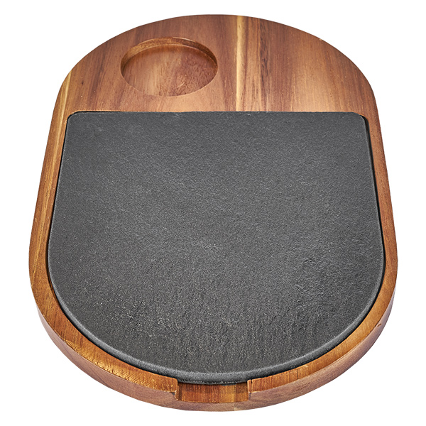 Deska do serwowania to praktyczny towarzysz wybranych posiłków. Połączenie drewna akacjowego i wyjmowanej płyty łupkowej zapewnia wysokiej jakości prezentację żywności.