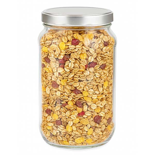 Informacje dot. produktu "Słoik okrągły 1062 ml z pokrywką BasicSeal w kolorze srebrnym UN.."