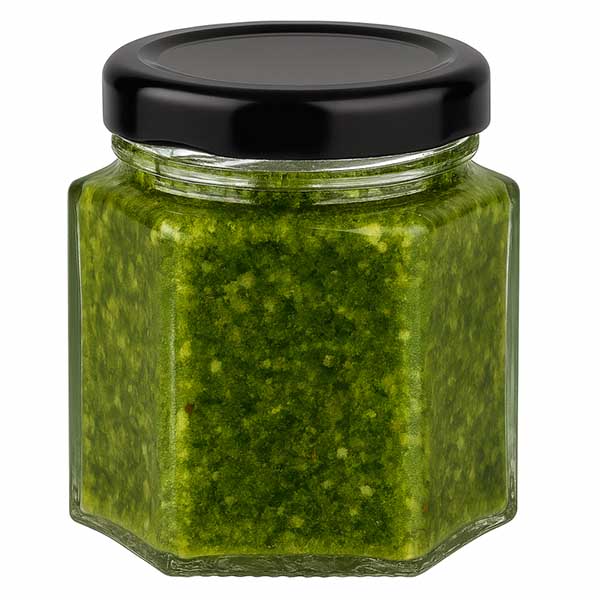 Informacje dot. produktu "Słoik sześciokątny 47 ml z pokrywką BasicSeal czarna UN.."