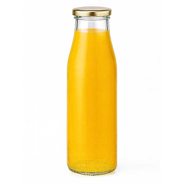 Szklana butelka 500 ml + pokrywka BasicSeal w kolorze złotym UNiTWIST. Całkowicie szczelna z dużą pokrywką TO48. Do mleka, soków i lemoniady.