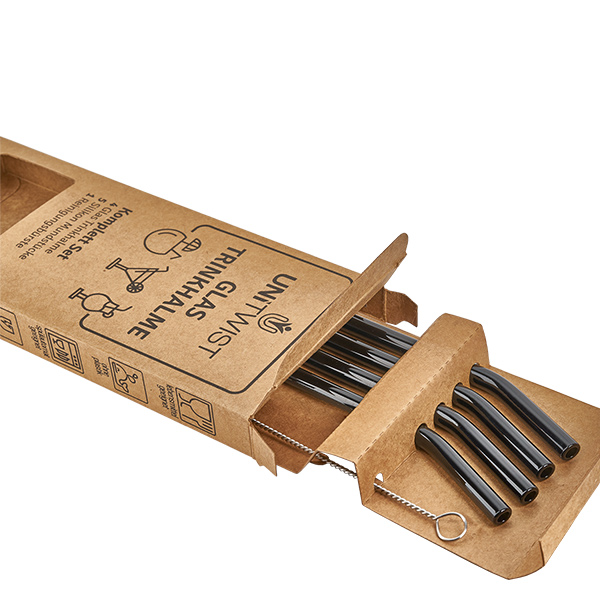 Informacje dot. produktu "Zestaw szklanych słomek do picia w kolorze czarnym z miękkimi końcówkami UNiTWIST"
